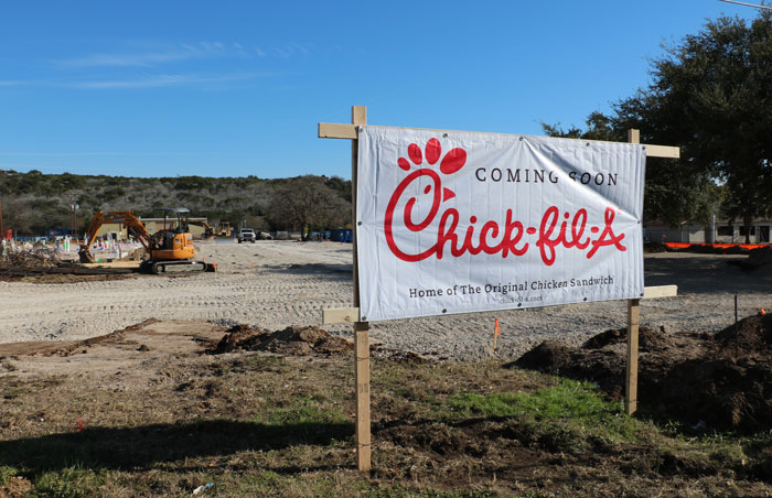 Drivers along U.S. 281 in Marble Falls may notice a new sign announcing the construction of a new Chick-fil-A restaurant. The Chick-fil-A will be located at the intersection of Commerce and the 2100 block of U.S. 281, the site of the former Edgar Funeral Home.