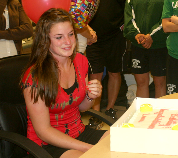 BHS girls athletic coordinator Mike Cavender called the signing “a special moment,” where all the hard work had paid off. He thanked Servise for her contributions and achievements and wished her the very best. The ceremony closed with a photo blitz and a chorus of “Happy Birthday.”