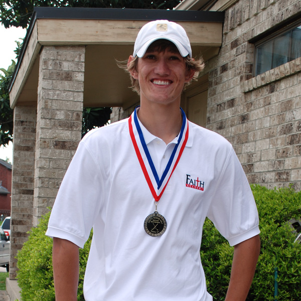 PHOTO 1: Faith Academy senior golf Wyatt Stewart with his medal signifying finishing as the third medalist at the South Regional Golf Tournament of the Texas Association of Private and Parochial Schools. Courtesy photos