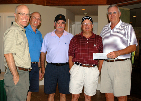 IN PHOTO: Harvey Cody (left), Dave Chandler, George McGowan, Steve Halpin and Leonard Seelig teamed up to win the 14th annual Ron Pruitt Memorial Golf Tournament recently. Courtesy photo