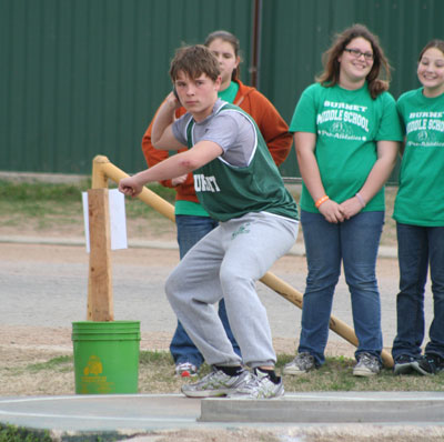 Burnet Middle School eighth-grade shot putter Jared McHazlett competed in a track and field tournament March 4 in Burnet. Photo by Erika Crawford /www.crawfordphotography.biz