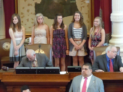 Lady Flames Jonelle Frazier, Sarah Mason Thomas, Ashley Stallard, Nicole Johnson and Savannah Still were presented to members of the house while several parents, fans and athletic director John Berkman looked on.