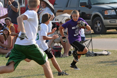 Daniel Upton turns on the jets to escape from defenders as he competes in the Hill Country Passing League on June 6.