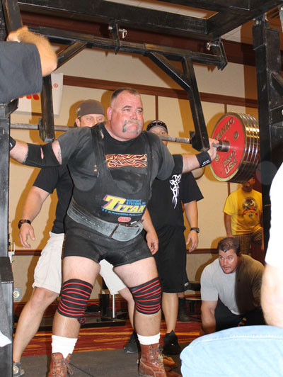 Marble Falls resident J.C. Roy takes the bar on his shoulders July 17 as he gets ready to squat 650 pounds during the Texas Firefighter Olympics in Round Rock. Roy hit the mark and earned a gold medal in the competition. Courtesy photo