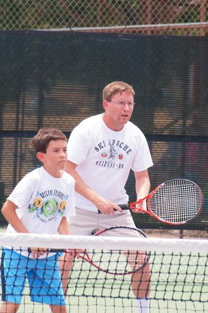 • Men’s open doubles: Greg Dyer of Marble Falls played with former Masonite Trey Nesloney to win the title for the third year in a row. Dyer and Nesloney beat former Marble Falls tennis star Monte Horne, now of Hamilton, and his 11-year-old son Caleb Horne in the second round. Other competitors were Jim Cornelius and son Jordan Cornelius, who had a tough draw and lost in the first round.