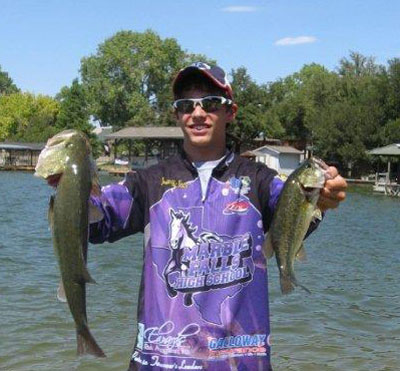 Marble Falls High School sophomore angler Hunter McNeese poses with two of the fish he caught during the club’s first tournament of year Sept. 10 in Granite Shoals. Courtesy photo