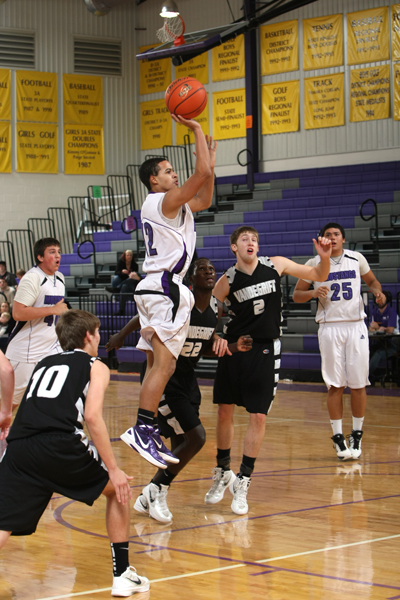 PHOTO: Marble Falls High School sophomore guard Keelan Gamble takes a jumper near the lane during the loss to Leander Vandegrift on Jan. 13. Photo by Virgil Belk/Hill Country Sports Images