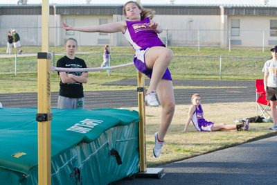 PHOTO 1: Marble Falls Middle School seventh-grader Aspen Woerner finishes second in the high jump at the Bulldog Relays March 2. Photos by Diana Cox