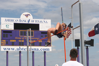 PHOTO 1: Marble Falls High School sophomore Tiffany Winters clears 8 feet 6 inches to finish third at the District 25-4A meet April 11.