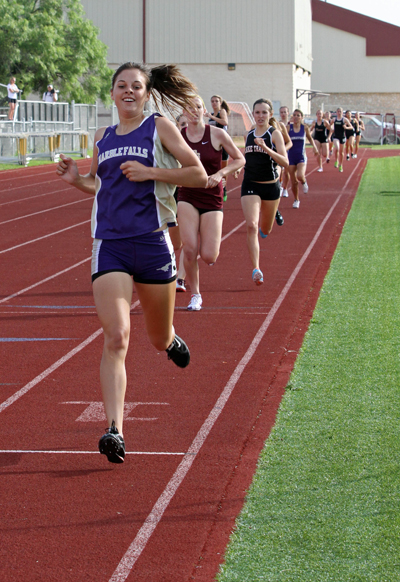 PHOTO: Marble Falls High School sophomore Sarah Stripling won the finals of the 800 meter run in 2 minutes 23.71 seconds at the District 25-4A Meet April 11-12 to advance to the Class 4A Region IV Meet in San Antonio April 27-28. Photo by Diana Cox