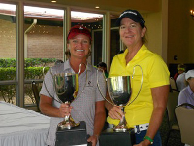 Camm Dougherty (left) of Corpus Christi and Leslie McCallick, the Horseshoe Bay Women’s Golf Association president, are the 2012 winners of the recent Women’s Texas Golf Association State Partnership tournament in Corpus Christi. Courtesy photo