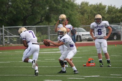 MARBLE FALLS — The first day of spring football for the Marble Falls High School Mustangs was filled with a lot of tight spirals, clutch catches and hard hits.