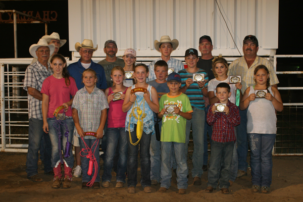 PHOTO 1: The Burnet County 4-H Kid Rodeo winners include Angelica York (front row, left), JeriLynn Spratlen, Paige Dalland, Kalli Dalland, Colby Metzler, Mason Scott and Mekalia Terry; Marble Falls Rodeo Association director Don Buss (second row, left), rodeo director Steve Rogers, Jacey Smathers, Cade Ringstaff, Conner Metzler and Shelby Baker; rodeo director Mike Dyer (third row, left), rodeo director Donnie Price, Zach Haydon, rodeo director Mark Becker and rodeo director Lauris Baker. Winner not shown is Kristin Conway. Staff photos by Jennifer Fierro