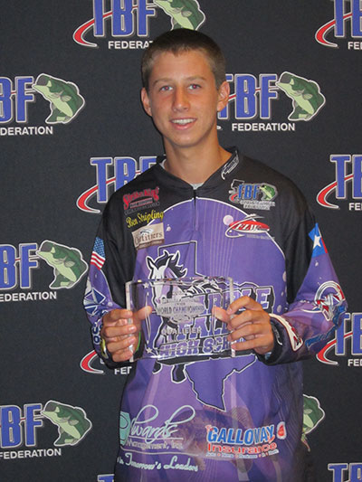 PHOTO: Marble Falls High School junior angler Ben Stripling shows off his National Guard Junior World Championship qualifier trophy from the Bass Federation. Courtesy photo