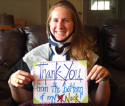Though she never lost the ability to walk, she didn’t realize how serious the injury was until her husband, Bryan, and parents, Ron and Kathleen Phillips, took her to an urgent care facility after the accident.