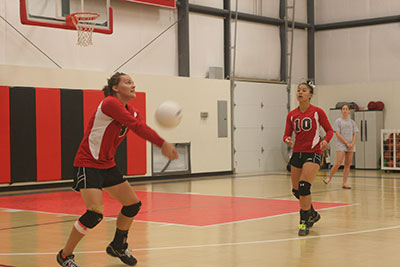 PHOTO: Faith Academy senior Rebekah Graham passes the ball during the Lady Flames’ loss to Fredericksburg Heritage Sept. 6. Staff photo by Jennifer Fierro