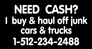 I buy and haul off junk cars and trucks(512) 234-2488 |