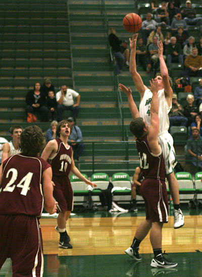PHOTO 1: Burnet High School junior post Chase Mardis (right) scores a jumper during the Bulldogs’ 50-38 win against Brownwood on Feb. 10. Staff photo by Jennifer Fierro