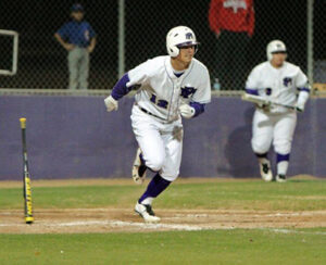 Marble Falls High School senior Mike Richardson makes his way to first base after he is walked. Photo by Kelly McDuffie
