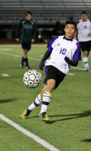 Marble Falls High School sophomore Jimmy Fermin passes the ball to a teammate during the Mustangs’ 4-0 loss to Cedar Park on March 1. Photo by Kelly McDuffie