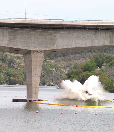 [/tab] [tab title=”PHOTO 2″]An explosion April 5 destroys the remaining piers from the old U.S. 281 bridge in Marble Falls.