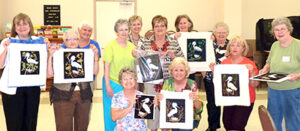 Marble Falls Quilt Club members dispay appliqued wall hangings of a snowy egret they created during a workshop presented by Margaret Bucklew (standing, fourth from left) at the club’s April meeting. “When Tradition and Technology Converge” showed members how to use Photoshop and other computer programs to design portrait quilts. Club members include Mary Powers (standing, left), Pat Joslin, Berta Schneider, presenter Bucklew, Paula Andrews, Josie Davis, Sharon Jenson, Lavada Helton, Fredi Franki and Shirley Bohmann; and Jo Anne Bryant (kneeling, left) and Sue Kersey. The club meets the third Wednesday of the month at First United Methodist Church, 1101 Bluebonnet Drive in Marble Falls. Its next meeting is 9:30 a.m. May 15. The program will be about hand dyeing fabrics. For more information, visit http://marblefallsquiltclub.blogspot.com. Courtesy photo