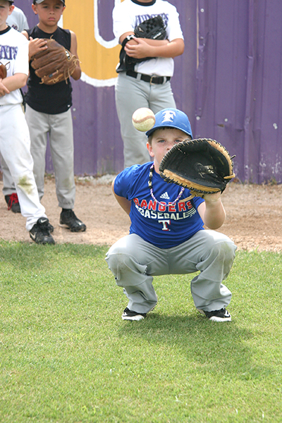 A variety of summer camps and clinics recently took place in the Highland Lakes, including basketball, baseball and horse riding. Second-grader Cooper Chase learns the proper way to catch a pitch during the Mustang Baseball Camp on June 5-7 at Scearce Baseball Field on the Marble Falls High School campus. The camp, which was directed by Mustangs baseball head coach J.T. Blair, drew 75 players. “I’ve been impressed with the talent, especially the 9-, 10- and 11-year-olds,” he said. Staff photos by Jennifer Fierro