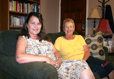 Paula Mays (left) and Karen Vincent relax in the Open Door Recovery House meeting area and Bible study room in the new location for the residential sober house for women. Go to www.opendoorrecovery.net to find out more about helping the program. Staff photo by Connie Swinney