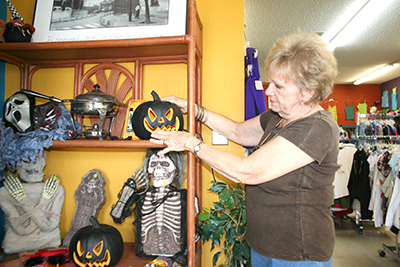 Store clerk Judy Coupel of In Harmony Thrift Store, 1104 FM 1431 in Marble Falls, said despite efforts such as a customer petition, the store will close after Sept. 21 because of economic struggles. Store proceeds funded scholarships and other activities for the Harmony School of Creative Arts, 1503 Mormon Mill Road. Prices of all items, including fall decor, clothing and shoes, are half off until the final day on Saturday. Staff photo by Connie Swinney