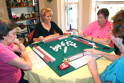Diane Danner (left), Ann Stevenson, Linda Vitas and Kay Herring participate in a mahjong tournament at a home in Sherwood Shores.