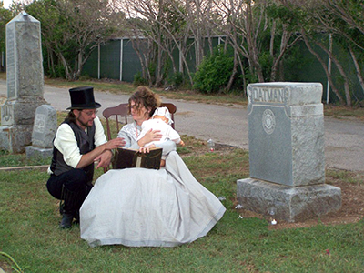 Ron Anderson (left) portrays John C. Oatman during a previous Llano Historical Cemetery Tour while Binky Morgan plays Oatman's wife, Maggie. Visitors can learn about the history of the community as well as the connections with many families who still reside in the area. The event is Oct. 22 from 5:30 p.m. to 7 p.m. with tours heading out every 15 minutes. This year's event features eight men who were members of the Confederate army. For more information, call the Llano County Library at (325) 247-5248. Photo courtesy of Llano County Library