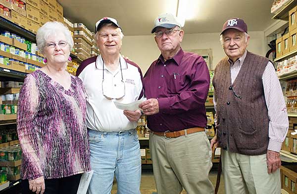 MARBLE FALLS — As members of the Burnet County chapter of the Texas Farm Bureau, Ray Cagle and Macyl Orman enjoy the annual rounds to area food pantries with checks in hands.