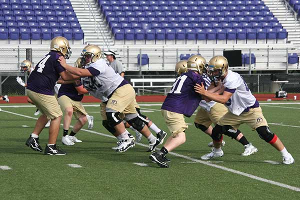Junior quarterback Brennen Wooten and the receivers had been spending time learning the playbook prior to training camp. So coaches spent time adjusting receivers to the proper spacing and correcting technique on route running.
