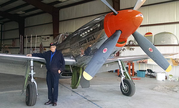 As part of its mission, Freedom Flyers offers World War II veterans an opportunity to take to the skies in either the P-51 or its AT-6. Thomson started out wanting to fly in another warbird but found himself in the Freedom Flyers’ hangar looking at the P-51 Mustang.