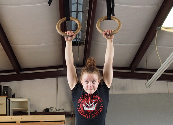 After looking over the workout and strategizing a bit, Kat set up next to the gymnastic rings one day at CrossFit Marble Falls and waited for the “3-2-1” countdown. And then, with other members watching, attempted her first official CrossFit muscle-up.