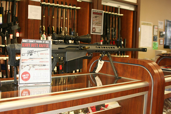 Burnet County Friends of NRA is selling chances to win a Barrett .50 cal semi-automatic rifle during a gun giveaway fundraiser in which proceeds will benefit youth shooting clubs, law enforcement and safety education. The other two rifles are a Springfield M1A and a Daniel Defense Ambush. Organizers will host drawings at 11 a.m. for the Wall of Guns raffle and at noon for the featured firearmson Sept. 19 at Outfitters Rods, Barrels and Strings, 1008 U.S. 281. Tickets for the three-gun giveaway are $100 each. Staff photo by Connie Swinney