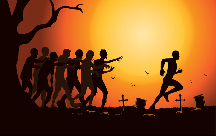 Those who don’t want to dash can “crawl.” About 10 minutes after runners take off is the start of “The Walking Dead” Zombie Crawl, a 100-meter walk.
