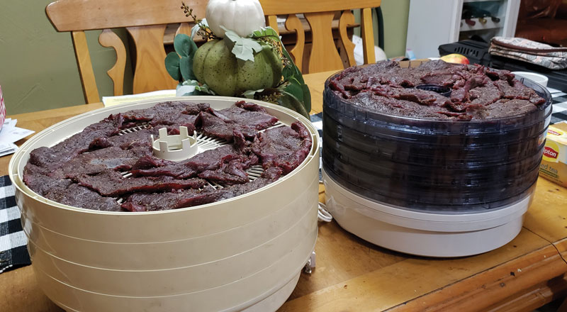 Once the meat is off the carcass and cut into strips, the entire clan gets involved, mixing in the spices, spreading the strips on smoker racks, and moving it all to dehydrators at just the right time. Even those who don’t help in the making get in on the taking. When the smell finally permeates every part of the house, everyone knows the jerky is done.