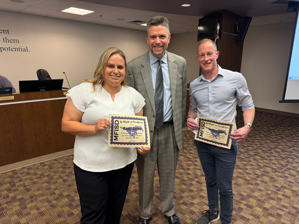 During Autism Awareness Month, MFISD recognized not one but two teachers for the April Spotlight on Excellence: Colt Elementary School’s Randi Dalton and Joshua Kull.