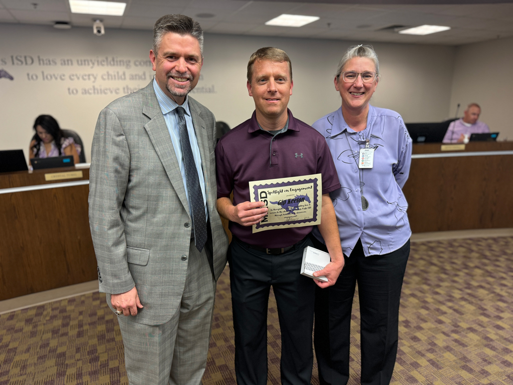 Marble Falls Middle School math teacher Gip Keeton was honored with the Spotlight on Engagement award for creating a learning environment that is not only academically rigorous but also deeply relational. His classroom buzzes with student energy and laughter as he weaves content mastery with humor, encouragement, and innovative strategies.