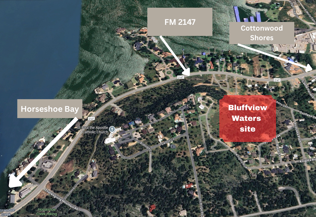 The new development will sit atop a large hill off of FM 2147 near the Horseshoe Bay border. The site is one of the highest points in Burnet County, according to the developer.