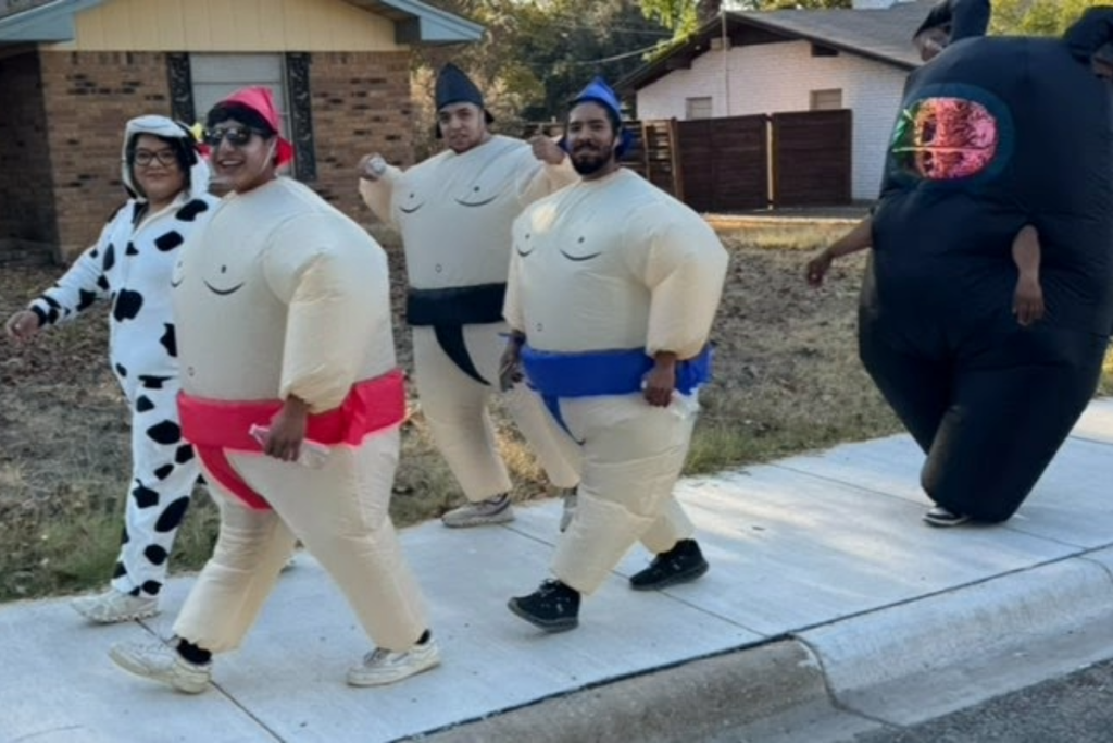 A few sumo wrestlers, a cow, and an ‘Among Us’ minion make their way through Marble Falls during the 2024 Ark of Highland Lakes Fun Raiser. The 2025 event is Oct. 25. Photo courtesy of The Athletic Club