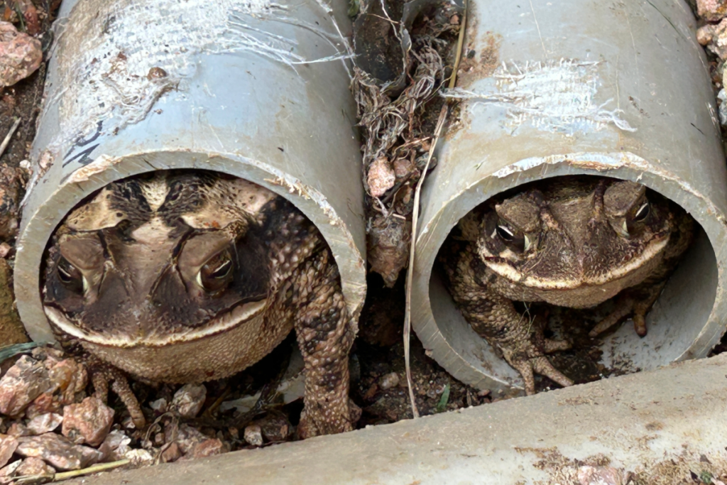 A toad’s body is stouter and more blob-shaped than a frog’s. Toads have shorter, stubbier legs and are not strong jumpers. They lack toe webbing and aren’t good swimmers either, but they are excellent diggers. A toad is most happy at home in your garden or on a patio, where they will burrow under soil in a potted plant, hide under rocks, or spend the day tucked in a moist drainage pipe.