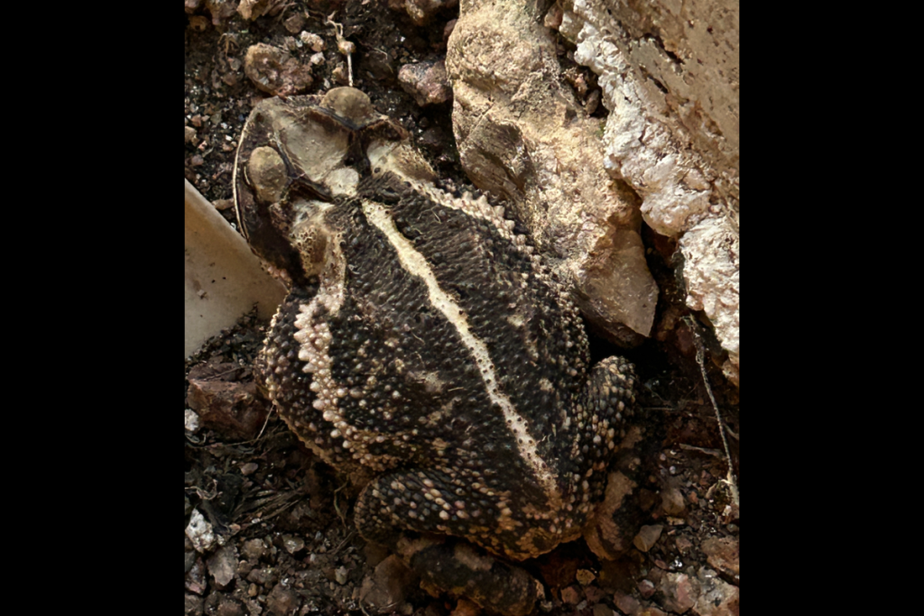 A Gulf Coast toad digs a hole in a potted plant on a Marble Falls patio. Staff photo by Wendi Wilkerson