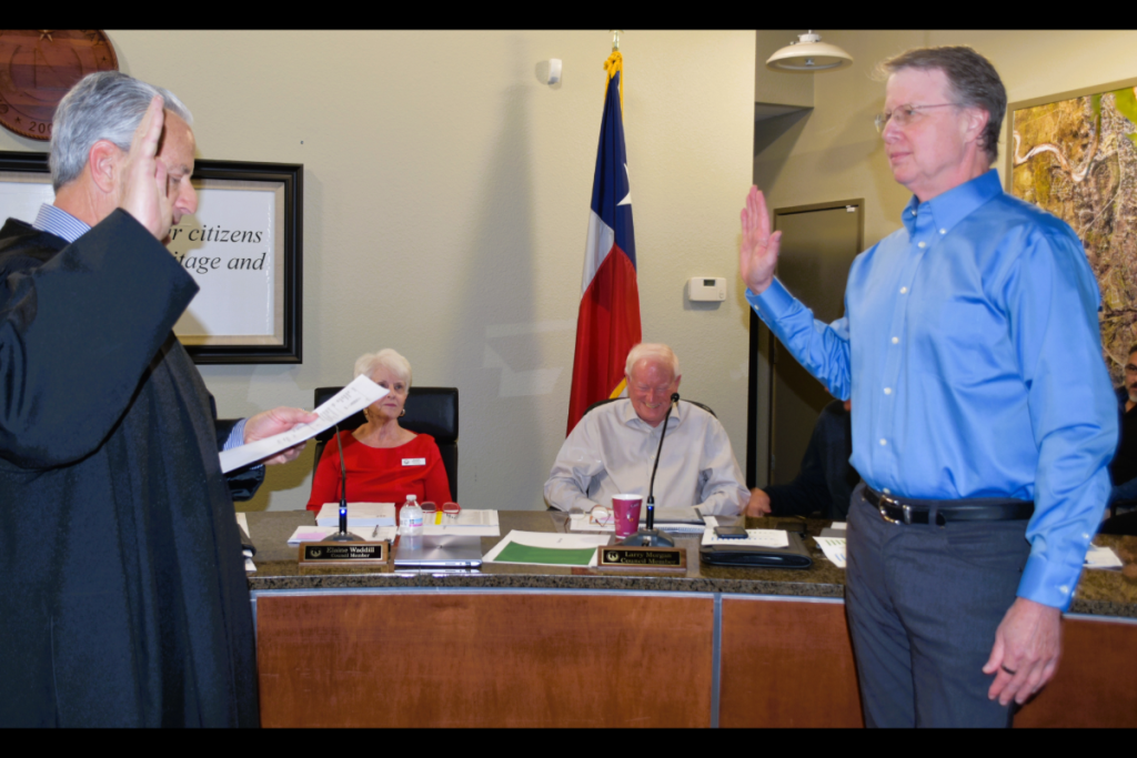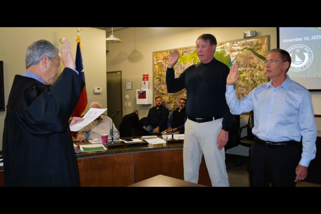 Horseshoe Bay welcomed new leadership during its Monday, Nov. 10 council meeting, as Mayor Jeff Jones and council members Frank Hosea and Ruben Fechner were sworn into office. Municipal Judge Kevin Madison performed the oath of office for each elected official.