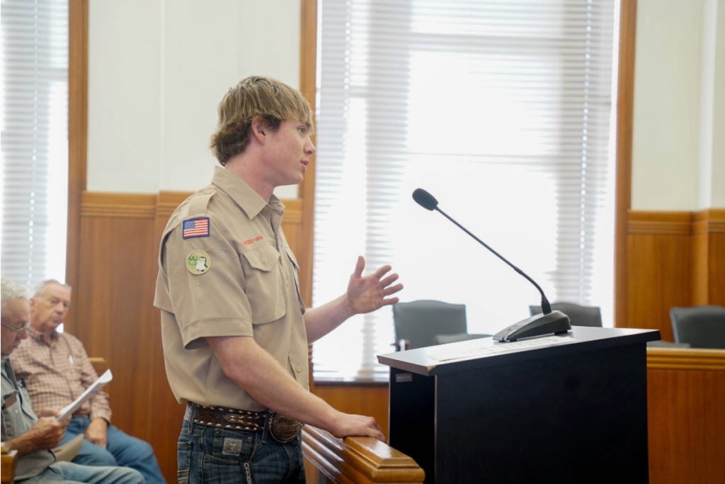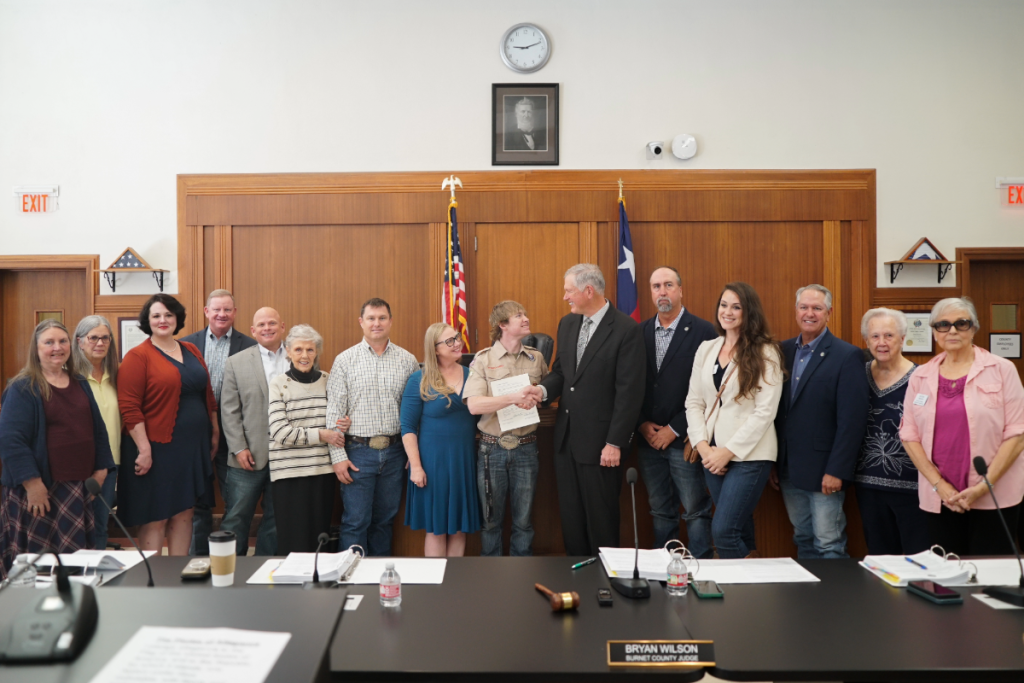 An Eagle Scout was officially recognized and thanked by the Burnet County Commissioners Court on Tuesday, Nov. 25 for his leadership in several renovations and improvements made to Stringtown Cemetery.