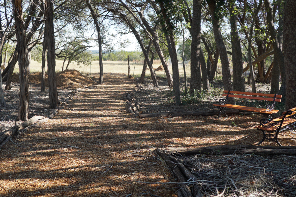 McAnally, his family, and other scouts cleared away trees, brush, trash, and debris that were in between the cemetery and adjacent land that will become a future parking lot for the site, making it easier to get in and out of the property. They also chipped the felled juniper trees and used them to make a footpath.