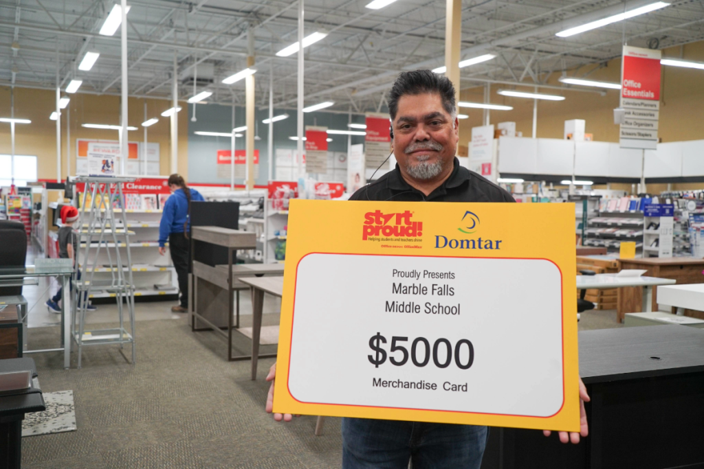 “It feels great to give back to the schools,” Office Depot General Manager Paul Chavez said. “They work so hard, and they give so much to our community and our kids here in Marble Falls.”