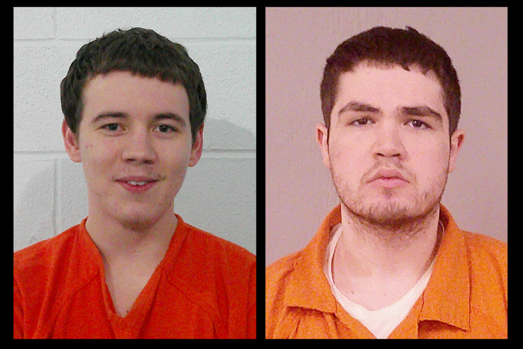 Jordan Eric Ostrander (left) and Kyler Nathaniel Allen, both 22, were charged with capital murder on Jan. 16, 2023. The two men are suspected of killing Preston Wessling, 38, and his son, Evan Wessling, 14, on Jan. 14, 2023, in Tow. Burnet County Jail photos