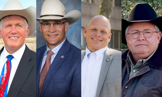 Incumbent Burnet County judge Bryan Wilson (left), Burnet County judge candidate Alan Trevino, incumbent Burnet County Precinct 2 Commissioner Damon Beierle, Precinct 2 commissioner candidate Leonard Guenter. Courtesy photos